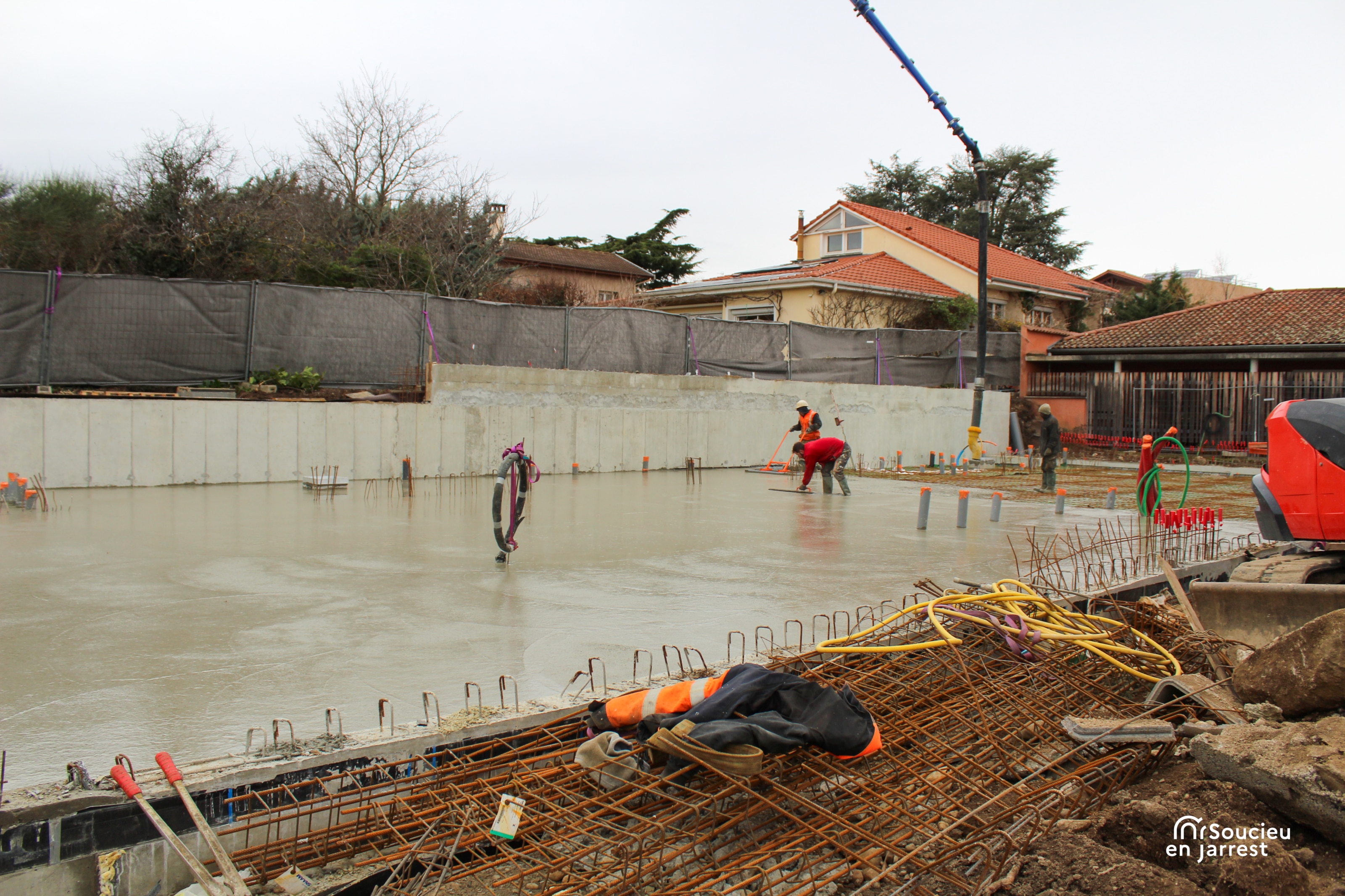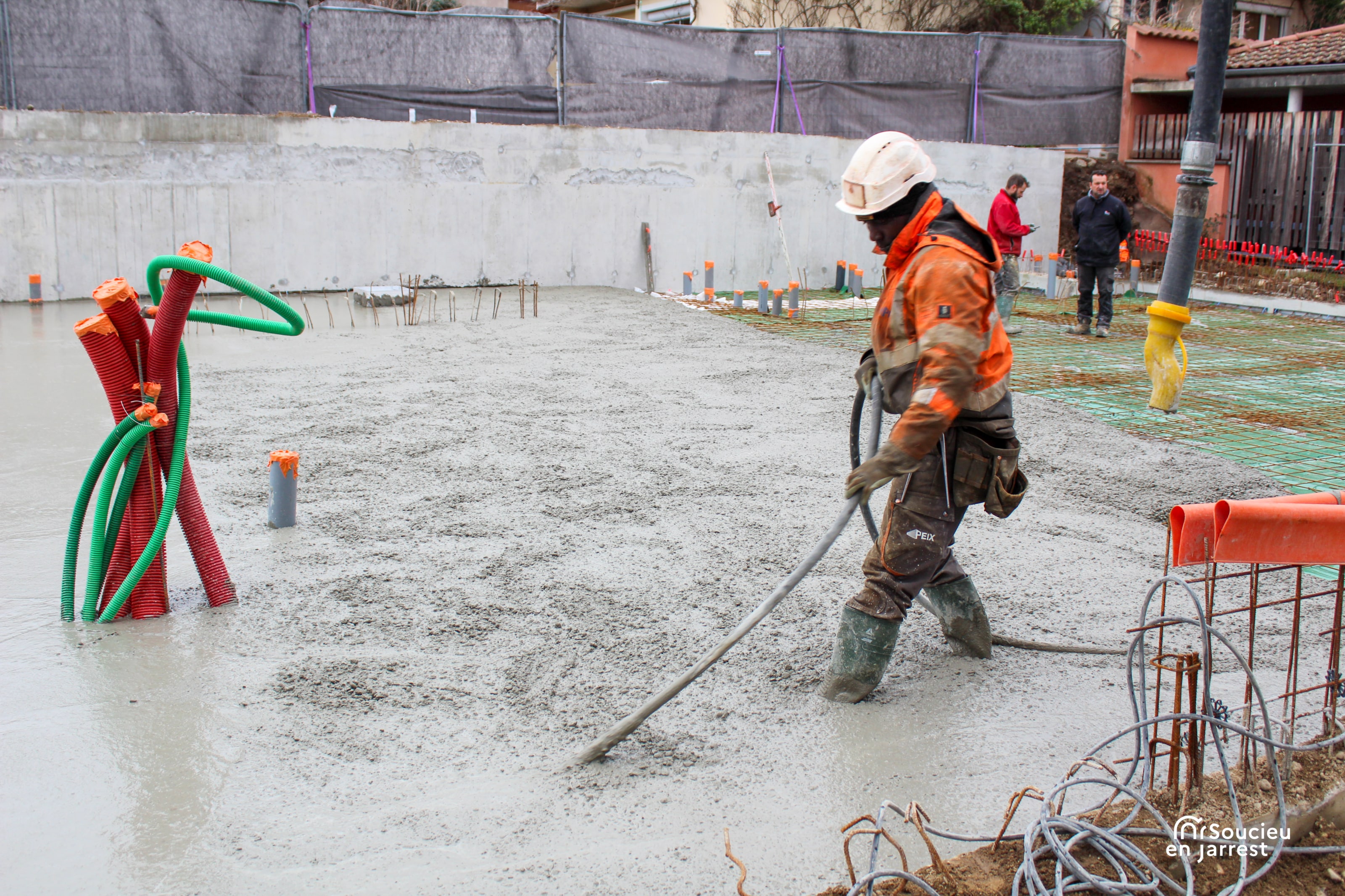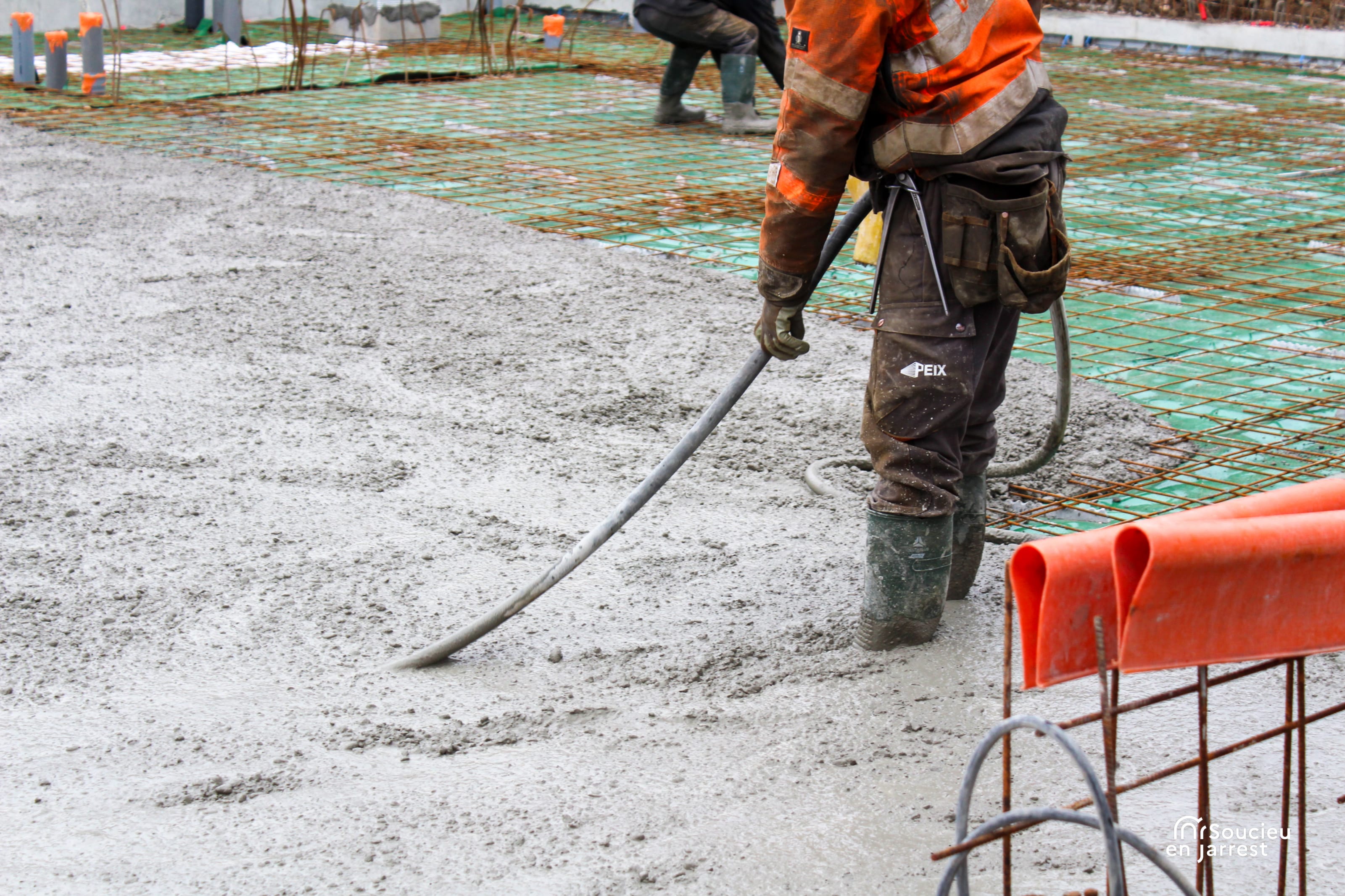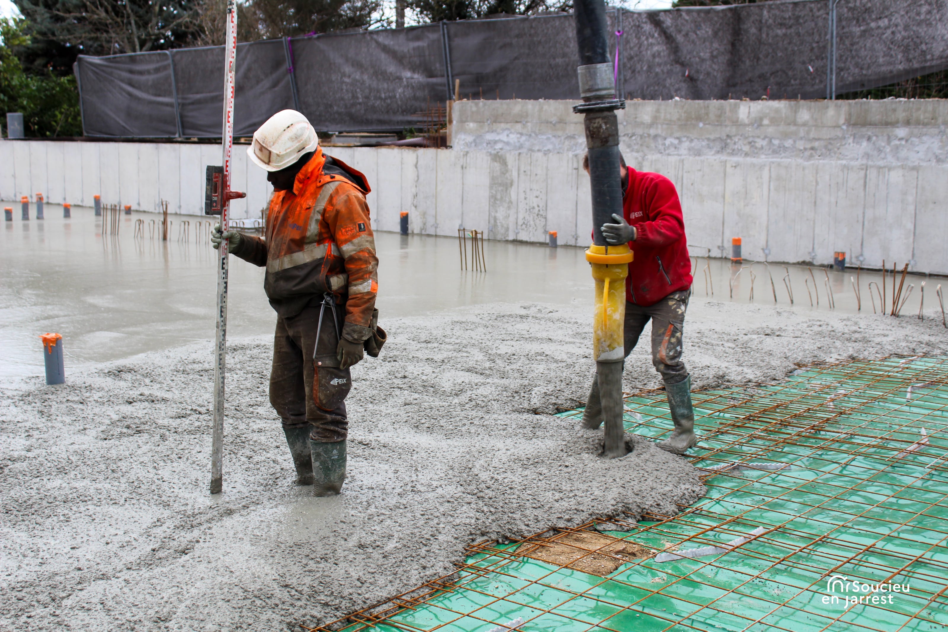 La semaine dernière, les équipes ont procédé au coulage de la dalle en béton. Cette opération marque la fin des travaux de fondation, c’est-à-dire la partie du chantier qui permet d’assurer la stabilité de la future construction.