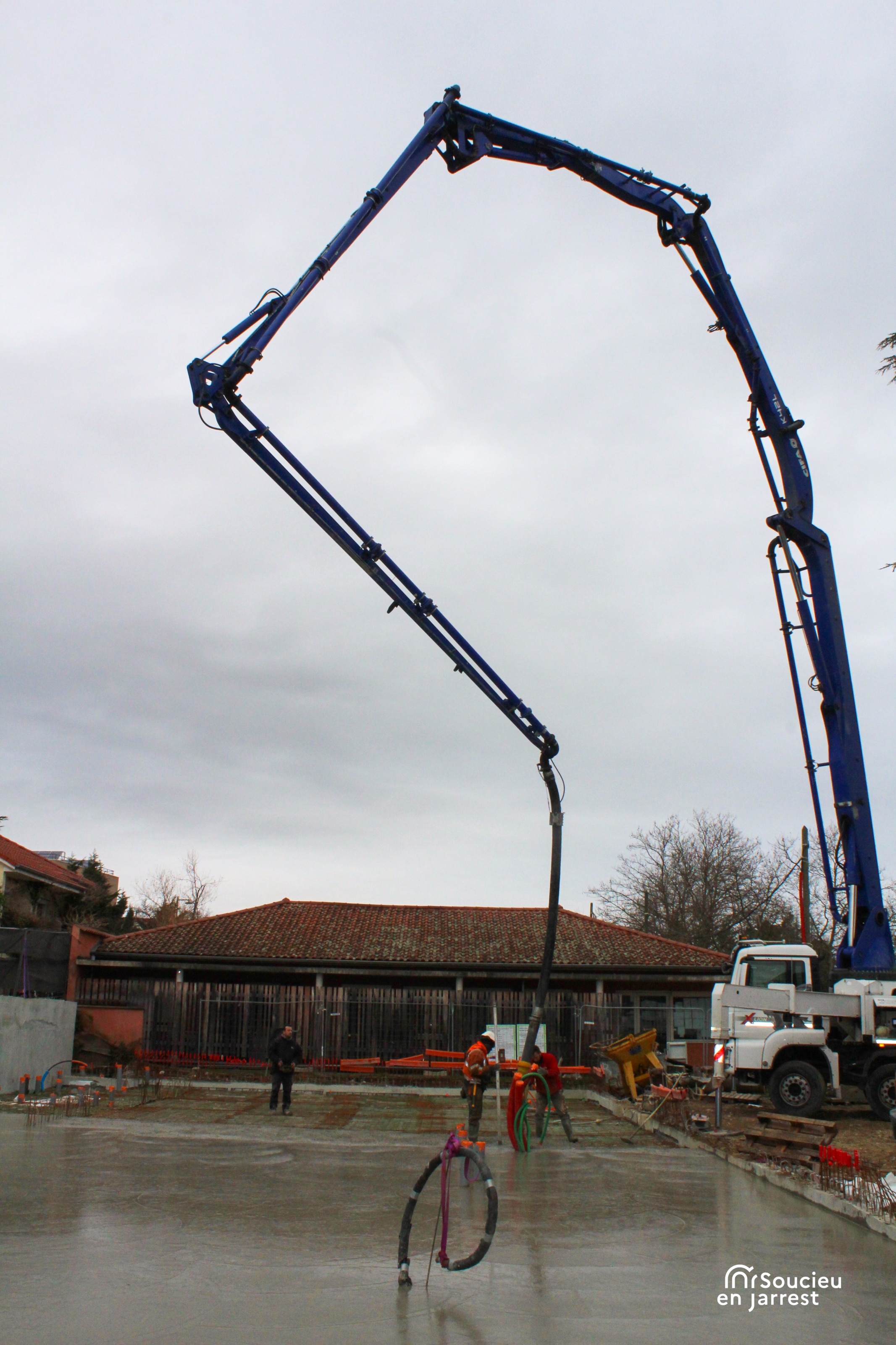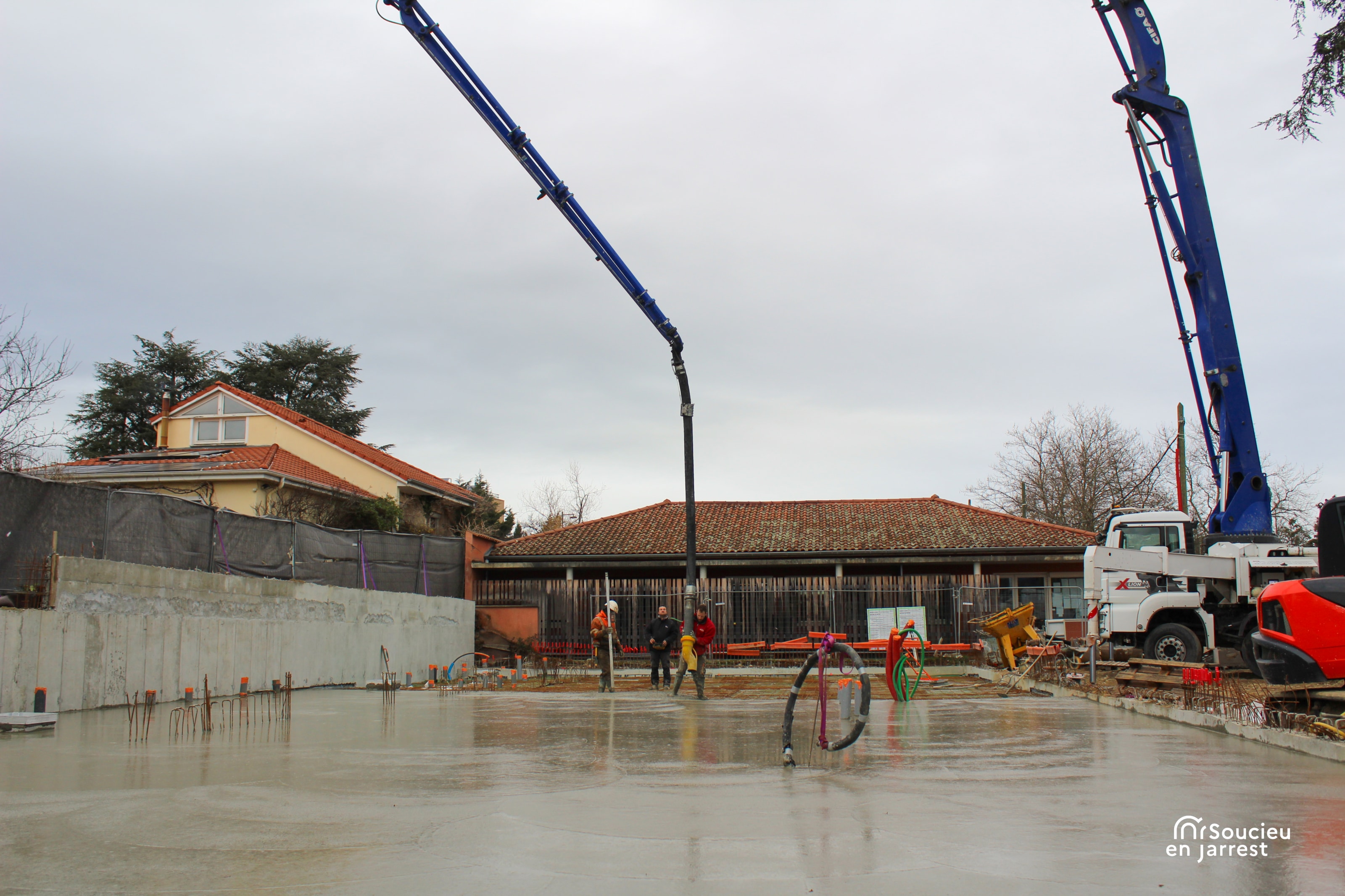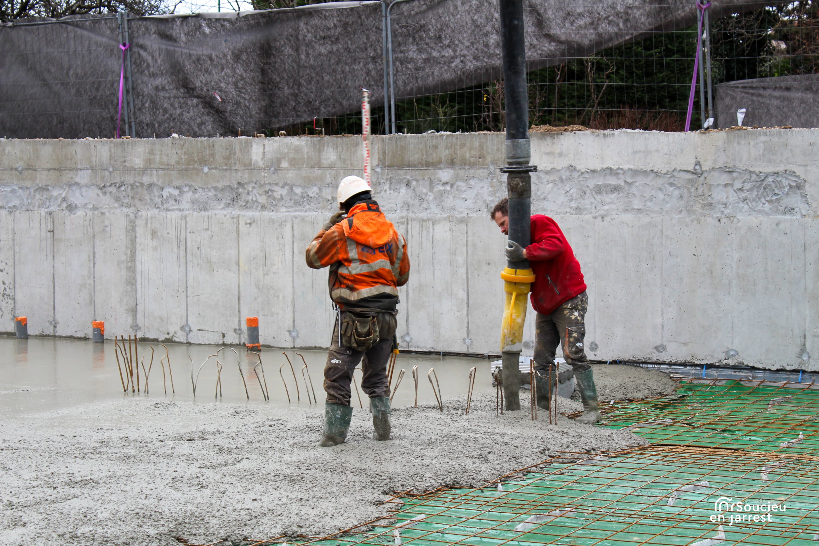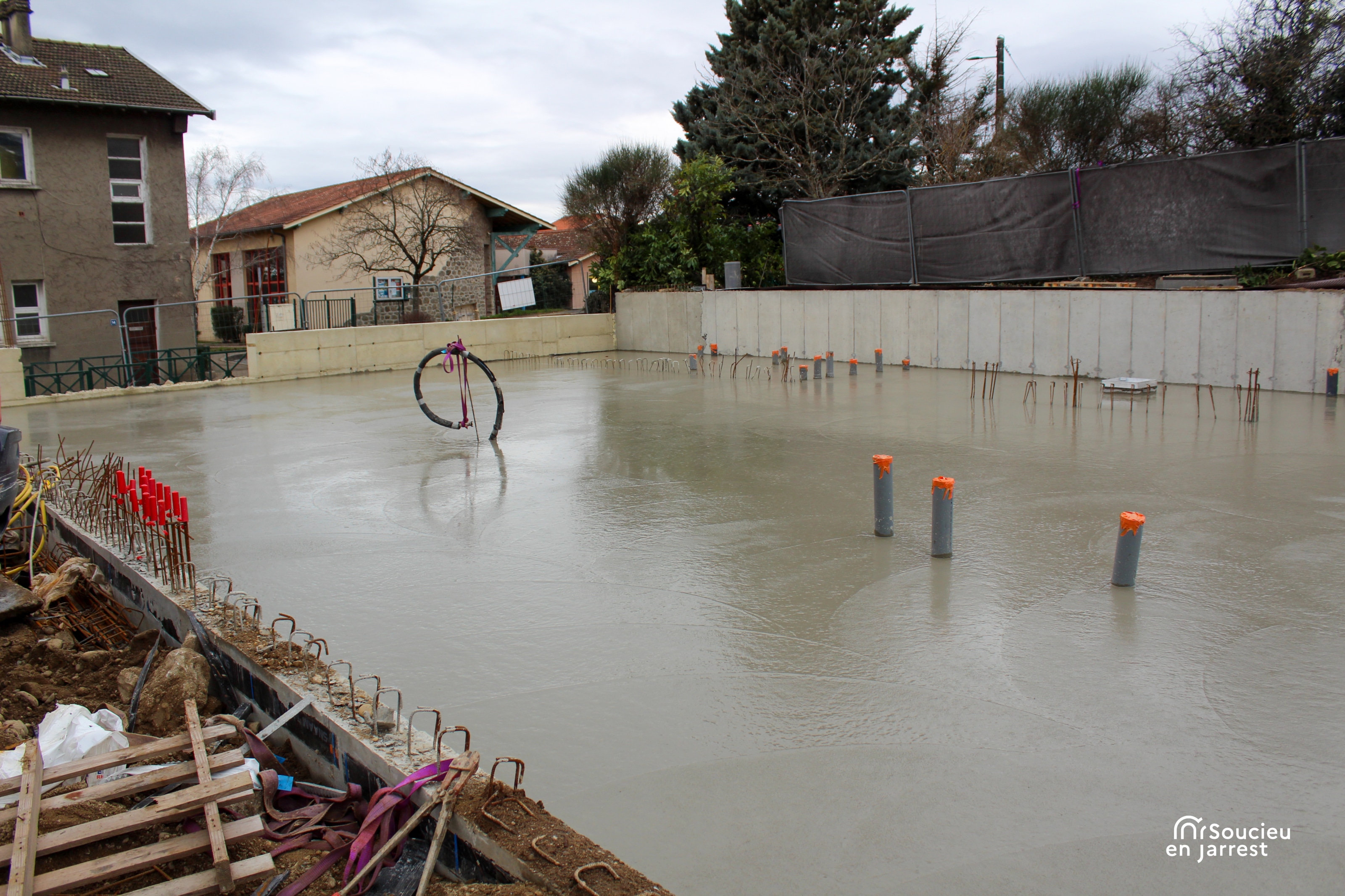 La semaine dernière, les équipes ont procédé au coulage de la dalle en béton. Cette opération marque la fin des travaux de fondation, c’est-à-dire la partie du chantier qui permet d’assurer la stabilité de la future construction.