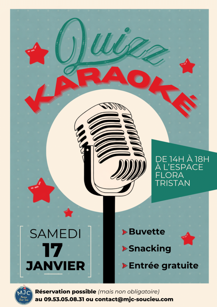 Réservation possible mais non obligatoire : 09 53 05 08 31 ou contact@mjc-soucieu.com