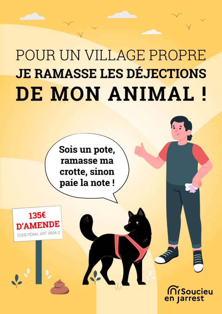 Les propriétaires de chiens sont tenus de ramasser les écrèments de leur animal sans quoi ils s’exposent à une amende de 135€.